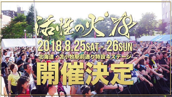 北海道最大級の野外音楽フェス『活性の火’18』を2018年8月25~26日、苫小牧駅前各所にて開催します!