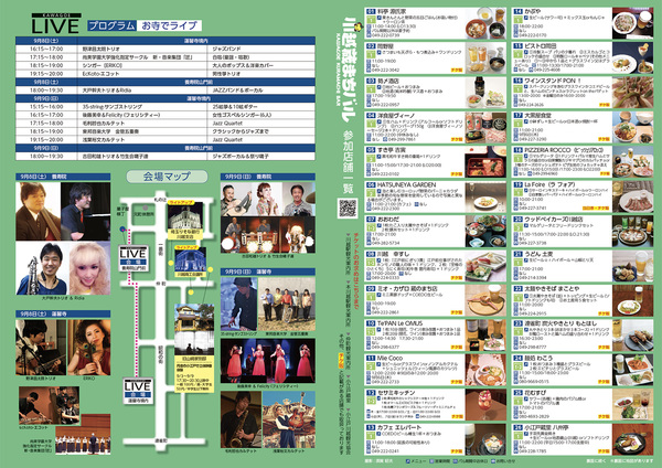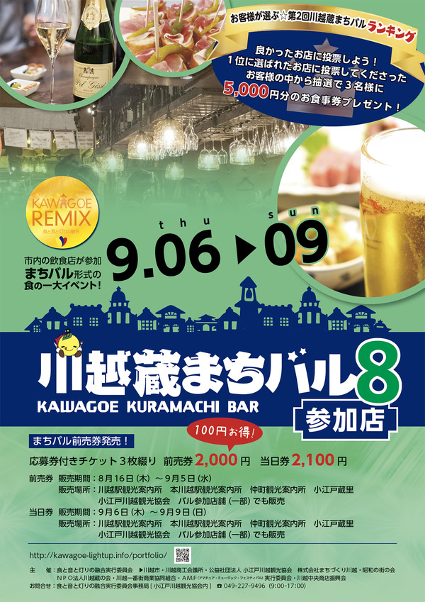 9月8日(土)〜9月9日(日)をメインとして、蓮馨寺、養寿院、一番街の周辺を中心に、 小江戸川越ライトアップ・KAWAGOE LIVE(カワゴエライブ)・川越蔵まちバル8を同時開催されます!!