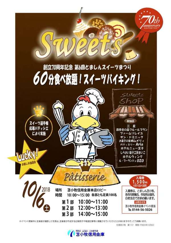 苫小牧信用金庫の本店ロビーにて『第6回とましんスイーツまつり』が開催されます。