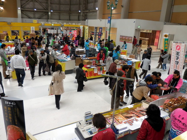 会場には苫小牧のホッキ貝や、むかわ町のシシャモ、白老町のタラコなど、
