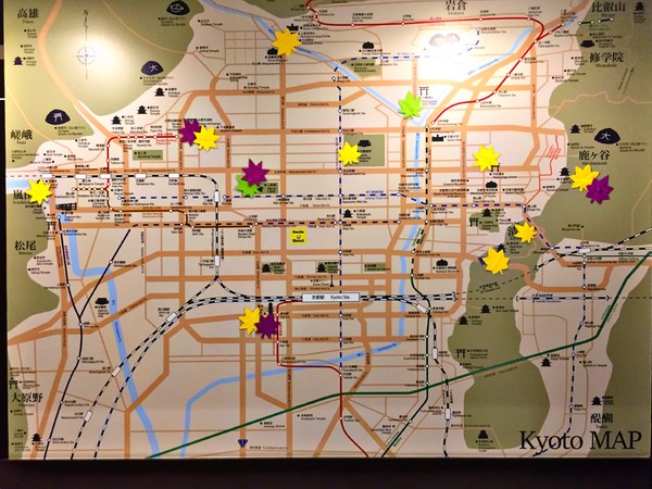 京都の観光マップには紅葉状況のご案内が一目で分かるように、