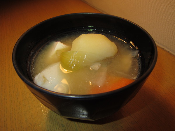 豚肉、人参、じゃがいも、タマネギ、ゴボウ、豆腐と野菜たっぷり、栄養も満点です。