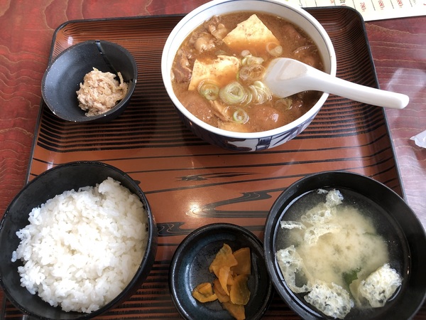 中善さんの「もつ煮込み定食」はボリュームがあり、