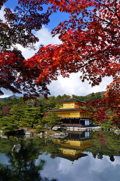 京都に紅葉の名所は多いですが金閣寺はお庭の広さと御堂の煌びやかさが紅葉の美しさと相まって本当に美しく人気の名所です。特に金色に輝く金閣と