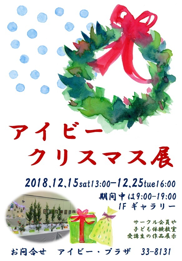 2018年12月15日~25日までアイビープラザにてクリスマス展が開催されます。