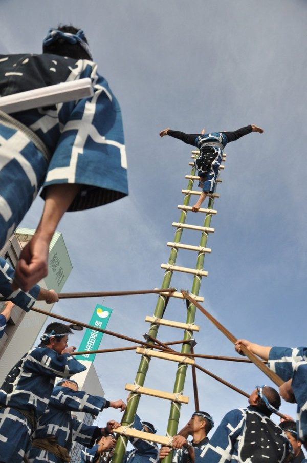 江戸時代末期から、町火消しの役を引き受けた鳶とび職の伝統を今に伝えようと、「熊谷鳶」が梯子はしご乗りの妙技を披露します!!