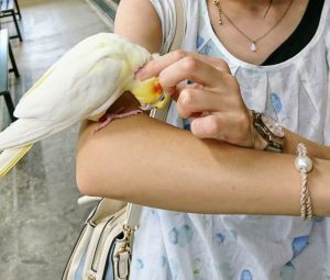 インコのふれあいコーナーにて。