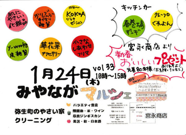 あづまジンギスカン、かつおしょうゆ、米などを販売し、先着80人には新春おいしいプレゼントを実施。市内で人気のクレープ屋さんや春巻工房のキッチンカーも駆けつけて賑やかなイベントになること間違い無しです!
