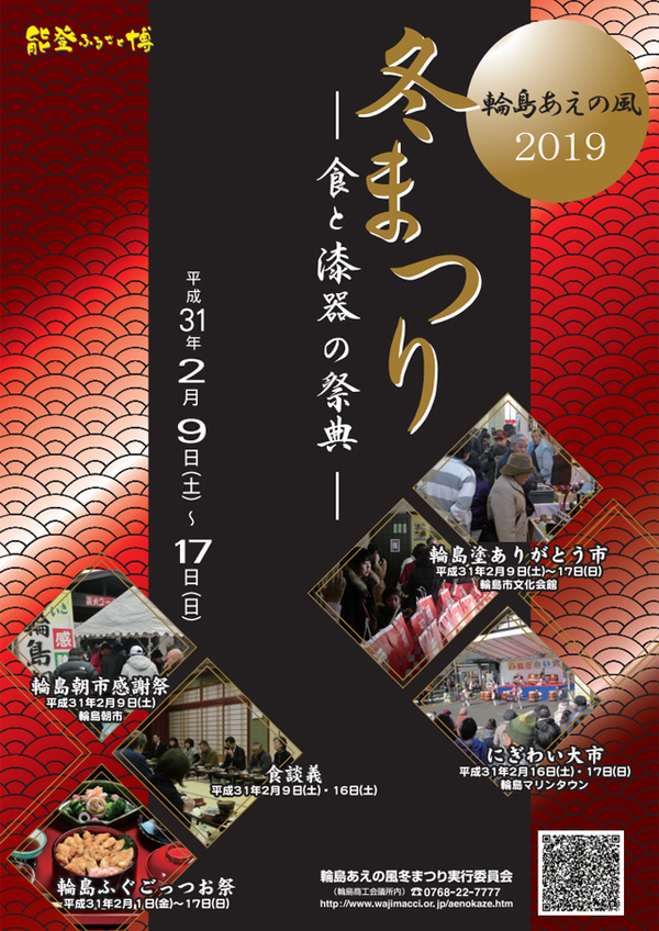 輪島の塗や食を堪能できる催し「輪島あえの風冬まつり」が2月9日(土)~17日(日)まで輪島市内各地で行われます!能登では冬に吹く季節風を「あえの風」と呼ばれています。