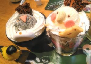 こちらは文鳥パフェとオカメインコパフェ。これまた可愛い!
