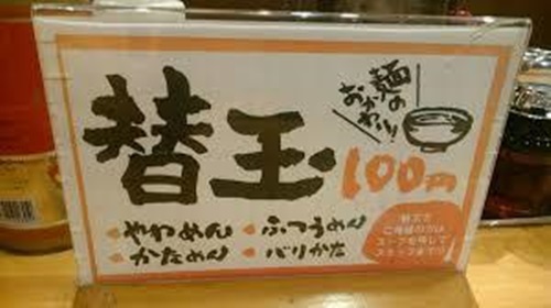 カウンター越しに「替え玉お願いしまーす」と言い、麺が来たら100円を渡す。