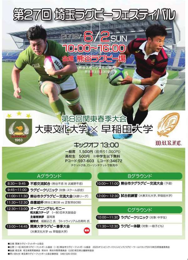 『大東文化大学 VS 早稲田大学』の試合が行われます。