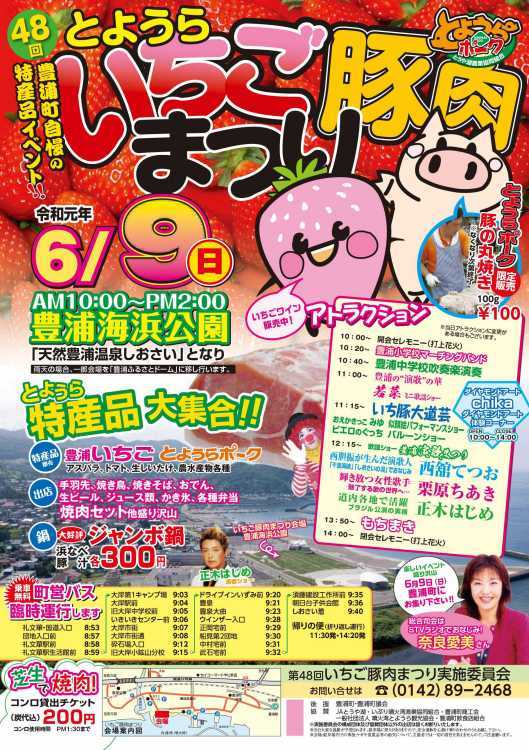 豊浦を代表する特産物、新鮮ないちごとおいしい豚肉を味わえる、豊浦の夏のオープニングイベントです。
