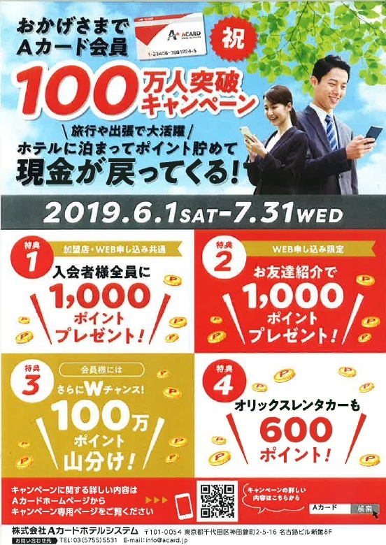 Aカードの会員様が100万人突破したことを記念して、6月から行っていたキャンペーンが、7/31で終了します!