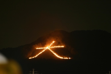 京都を囲む5つの山に「大文字」「妙法」「船形」「左大文字」「鳥居形」を順番に描かれていきます。