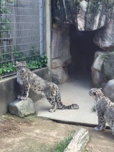 ユキヒョウは二匹仲良く隣の檻のジャガー観察していたり