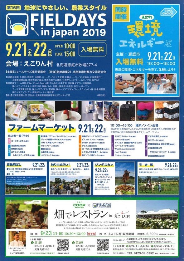 『フィールデイズ・イン・ジャパン』は道内の農業者やクラフト作家による「ファームマーケット」や ひき馬体験(有料)、恒例の「長靴とばしオリンピック」など楽しいイベントが盛りだくさん!