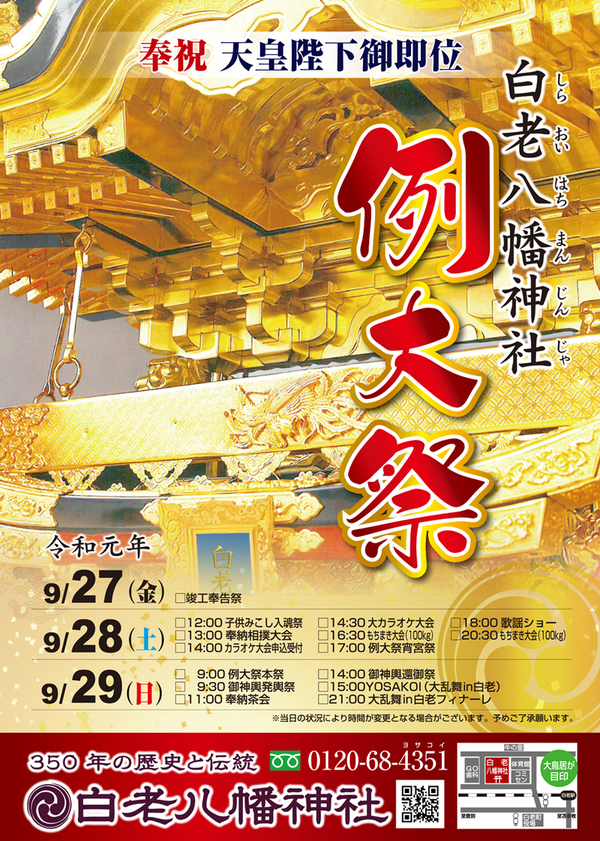 当館よりお車で30分程、白老八幡神社での例大祭のご案内です。