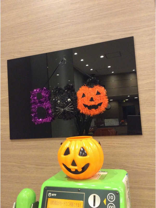 当館のロビーもハロウィーン仕様になっています(*"ー"*)