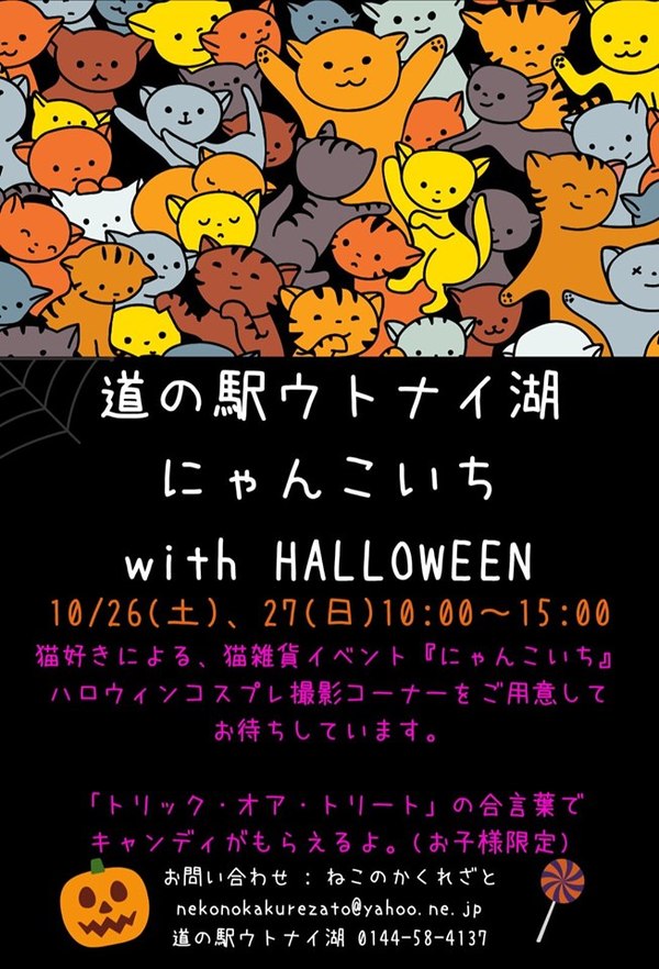 道の駅ウトナイ湖にて「にゃんこいちwith halloween」が開催されます。
