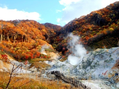 紅葉の季節を迎えると、地獄谷周辺や大湯沼周辺のナナカマド、ヤマウルシ、ダケカンバが真っ赤に色付く景勝地。見頃は例年10月中旬から下旬となります。日没から21:30までは遊歩道にフットライトが灯る「鬼火の路 幻想と神秘の谷」が実施されます。