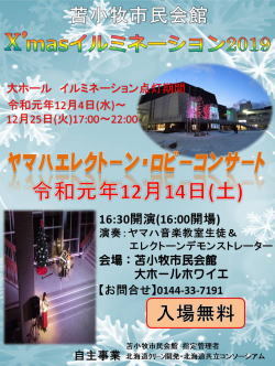 ヤマハエレクトーンロビーコンサートが苫小牧市民会館にて行われます。