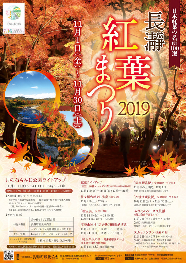 月の石もみじ公園、寶登山神社、自然の博物館も観光客に人気の紅葉スポットで、見頃にはライトアップが行われます★