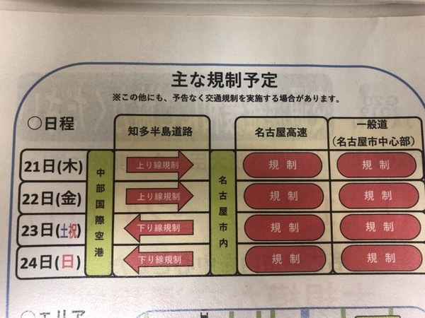 本日から愛知県にて“G20愛知・名古屋”のため、