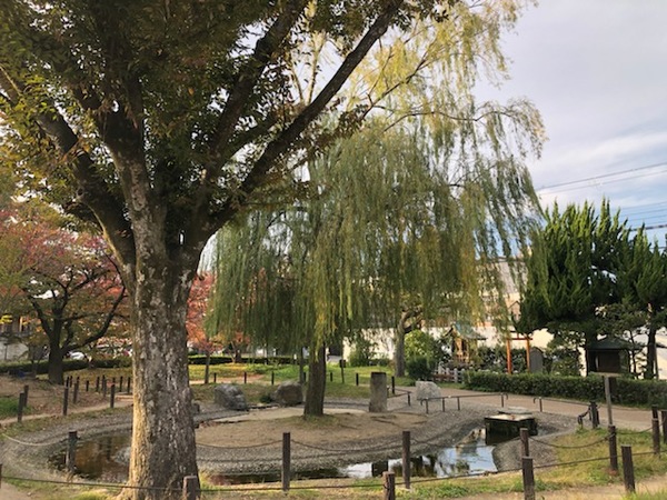 源頼政に射られた鵺が落ちて来た場所というのが、二条城の北側にある二条公園です。