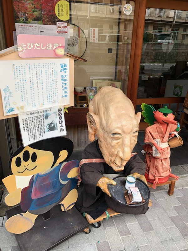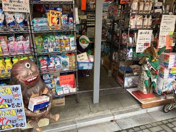 お店の前には、手作り感いっぱい(いいように言いました・・)の妖怪が所々で見られ、