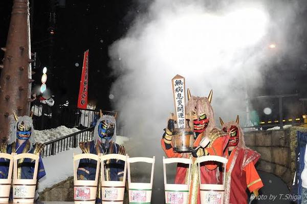 厳寒の冬、豊富な湯量と多彩な泉質を誇る「湯」への感謝と、湯が尽きることのないよう繁栄と無病息災への祈りを込めた祭りです。中でも4日には下帯姿の若者たちが、激しくお湯を掛け合う「源泉湯かけ合戦」や「道祖神裸ねりこみ」は勇壮で、イベント会場は熱気の渦に巻き込まれます。
