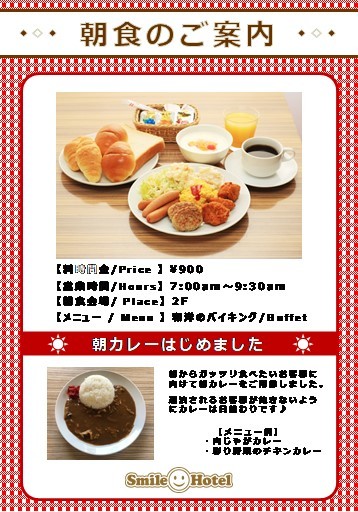 9時15分までにチケットをご購入して頂ければ、ご宿泊頂いていないお客様でも朝食がご利用頂けます。