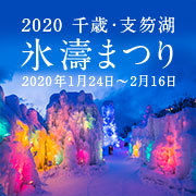 支笏湖の湖水をスプリンクラーで吹き付け凍らせた、大小様々な氷のオブジェが立ち並ぶ、北海道を代表する冬の祭典。昼は支笏湖ブルーと呼ばれるナチュラルブルーに輝き、夜は色とりどりのライトに照らされ、幻想的な世界を演出します。期間中は、花火大会や氷濤ウエディングなど盛り沢山の楽しい行事を開催する他、会場内売店では、オリジナル商品 『氷濤飴』をはじめ、温かい飲み物や食べ物なども販売いたします。 また、会場周辺には、泉質の異なる良質の温泉があり、冷えた体を温めることもできます。厳冬のホットスポット、支笏湖へぜひお越しください。