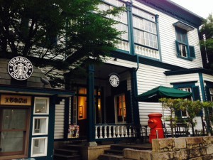 多くの観光客が、こちらのスターバックス北野異人館店をバックに記念撮影をしています。