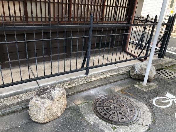 塗装道路ではない時代は、「犬走り」(画像の柵内の壁と道路の間)に設置し、土埃や泥水などを防いだそうですね。