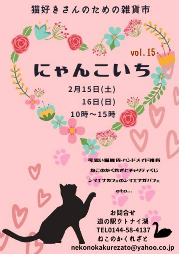 本日から2日間にわたり、にゃんこいちが苫小牧お道の駅「ウトナイ湖」にて開催されます。
