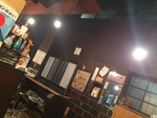 店を構え、昭和のムードが漂う赤ちょうちんとビールの看板が