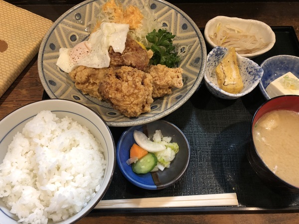 唐揚げ定食は衣がサクサクでご飯に合い、副菜も豊富で大満足でした!