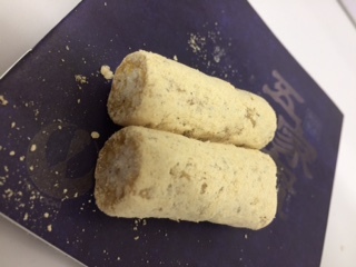 五家宝は本来、黄な粉をまぶした細巻きのものですが、堀内製菓では太巻きのものがあり、味も杏子や抹茶などの種類もあり、違った風味が味わえます。
