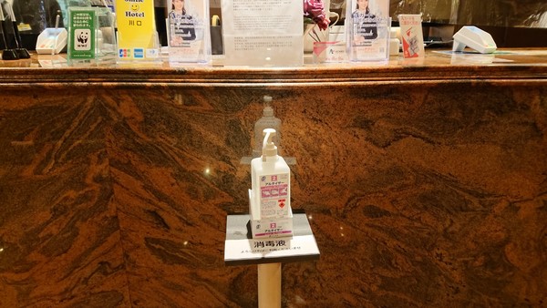 当ホテルにはアルコール消毒液を設置しておりますので是非ご利用くださいませ。