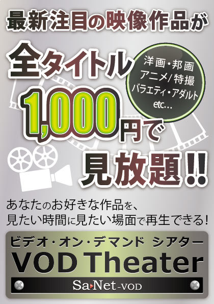 1泊1,000円で、作品タイトル500品以上の邦画・洋画が1日中見放題。