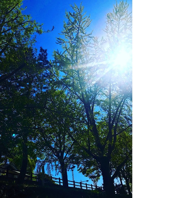 つつじ園には大銀杏の木もあり、今は小さくて柔らかな若葉が太陽の光を通します♪(背が高すぎてスマホに収まりきらず、迫力がイマイチ伝わらなくて悔しい。。)