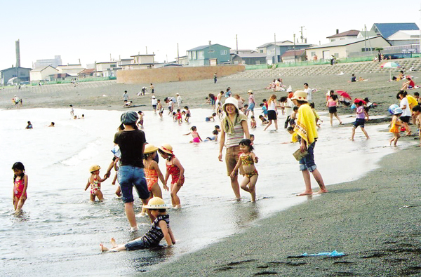 自然海岸や直立護岸を緩傾斜護岸に改良し、高潮などの災害を抑制するとともに、家族連れで楽しめる景観に配慮した海岸と緑地が一体となった憩いの場です。