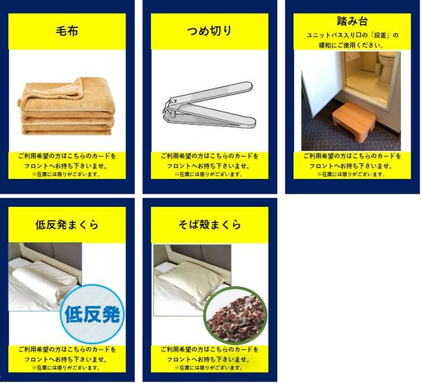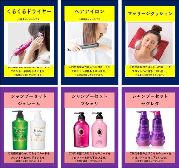 当ホテルの<無料貸出品>をご紹介させて頂きます。
