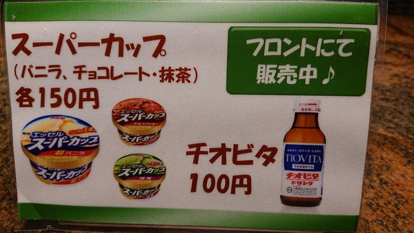 当ホテルではアイスクリーム(スーパーカップのバニラ、チョコ、抹茶の3種類)を150円にて販売しております。