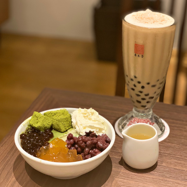 写真は、京都限定の京都と台湾のスイーツのコラボである「宇治抹茶豆花」です。