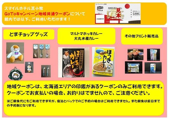 当館でもフロント販売品にてGoTo地域クーポンが利用できます