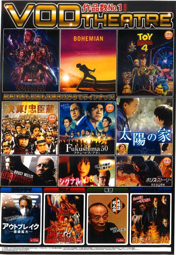 洋画では「AVENGERS ENDGAME」「BOHEMIAN RHAPSODY」「TOY STORY4」