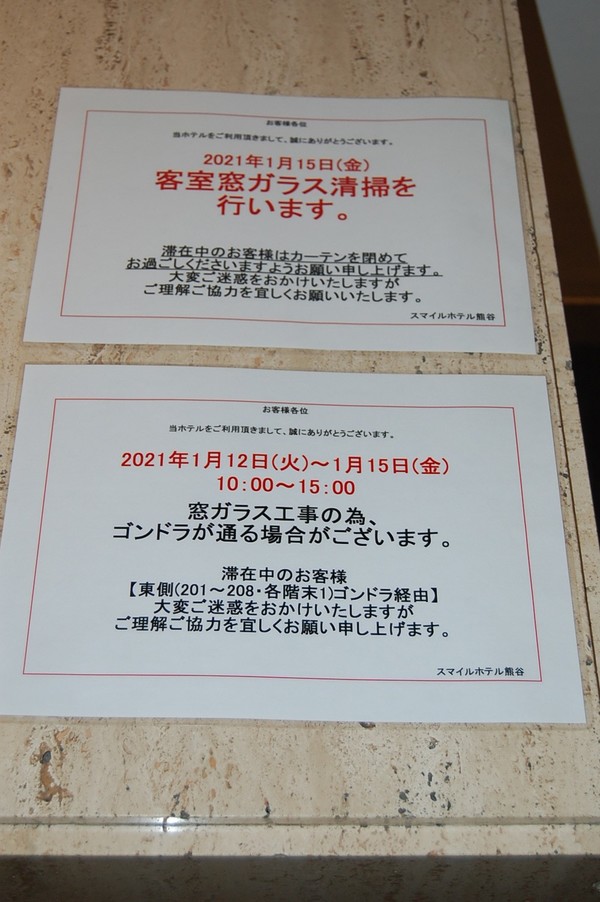 上記期間に客室窓ガラス工事の際にゴンドラが通る場合がございます。