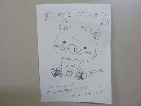 この画像のイラスト、お客様が客室にあるメモ用紙でお書きになられたものです!